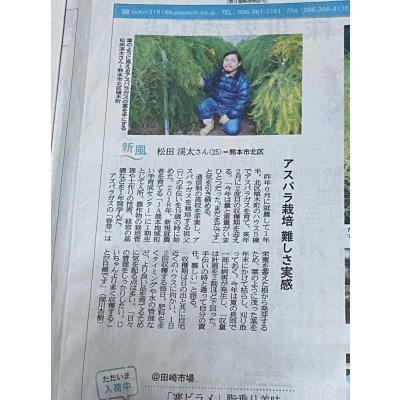 父がアスパラガス育て始めて、20年になりました。熊本の肥沃な土と阿蘇山からの豊富な地下水を使って、我が子のように丁寧に育ててきました。経験から、できるだけ農薬を少なく使用し、健康なアスパラガスを作ってます。毎年、J Aや直売所で好評で「甘い」「やわからい」「美味しい」と言ってもらってます。その父から、やり方を学んだ孫が新たに就農して、アスパラガスを作り始めて2年目になります。1年目のアスパラガスは、じいちゃんの教えもあって美味しく出来ました。とても甘く、目を離すと飼い犬のウインが食べてしまうほどです。ぜひ一度食べてみて下さい!