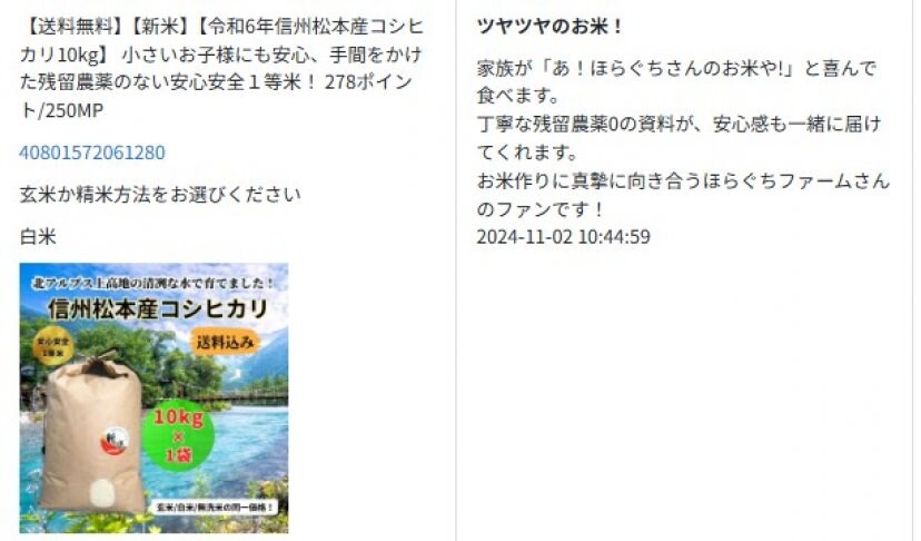 当ファームは収穫後の玄米を、株式会社つくば分析センターで200品種の残留農薬試験および放射線物質試験/カドミウム重金属汚染試験を確認しております。令和7年産コシヒカリ(玄米)は全試験が未検出で全く問題はありません。(詳細は商品毎の掲載ページに結果詳細写真を同時掲載していますので確認ください。)安心安全の1等米をお届けします。また、他者米との混合は一切行わず”ほらぐちファームブランド”として一貫米作り(育苗・田植え・稲刈り・籾すり・精米・出荷)で自工程完結していますので食味・残留農薬・1等米品質は変化せず均一かつ高品質を実現できています。ご安心ください。