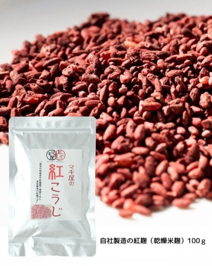 2016年から紅あまざけの開発に着手し2017年に県内初リリース。紅麹と出会って33年の代表金城が紅麹をもっとたくさんの人に知ってほしい、あたらしいおいしさの発見をして頂きたいという思いで、「紅あまざけ」の開発を手掛けました。紅麹は、蒸した米に紅麹菌を繁殖させて出来上がる麹の一つです。麹菌の中で唯一赤い色素を出します。世界記録遺産の薬学本「本草綱目」にも収載されている、琉球王朝伝統の健康素材です。沖縄名産である豆腐の発酵食品「とうふよう」製造等に使われ、200年以上の永い歴史があります。マキ屋フーズではその紅麹菌を自社で管理しています。沖縄の食文化を広く知ってもらう機会となるよう、紅麹の商品開発に取り組みました。紅麹は健康や美容に良いと機能性が認められ、サプリメントにも使用されています。また、琉球大学農学部名誉教授である安田正昭教授との共同研究を行っております。紅麹を日常の食生活に取りいれ、美容と健康につなげてほしいという思いから「紅あまざけ」が生まれました。2018年には某健康番組で取り上げられ話題になっております。こだわりは原材料をすべて地元名護産のものを使用。(自社製造の紅麹、羽地米(名護市羽地産)、シークワーサー(名護産)
