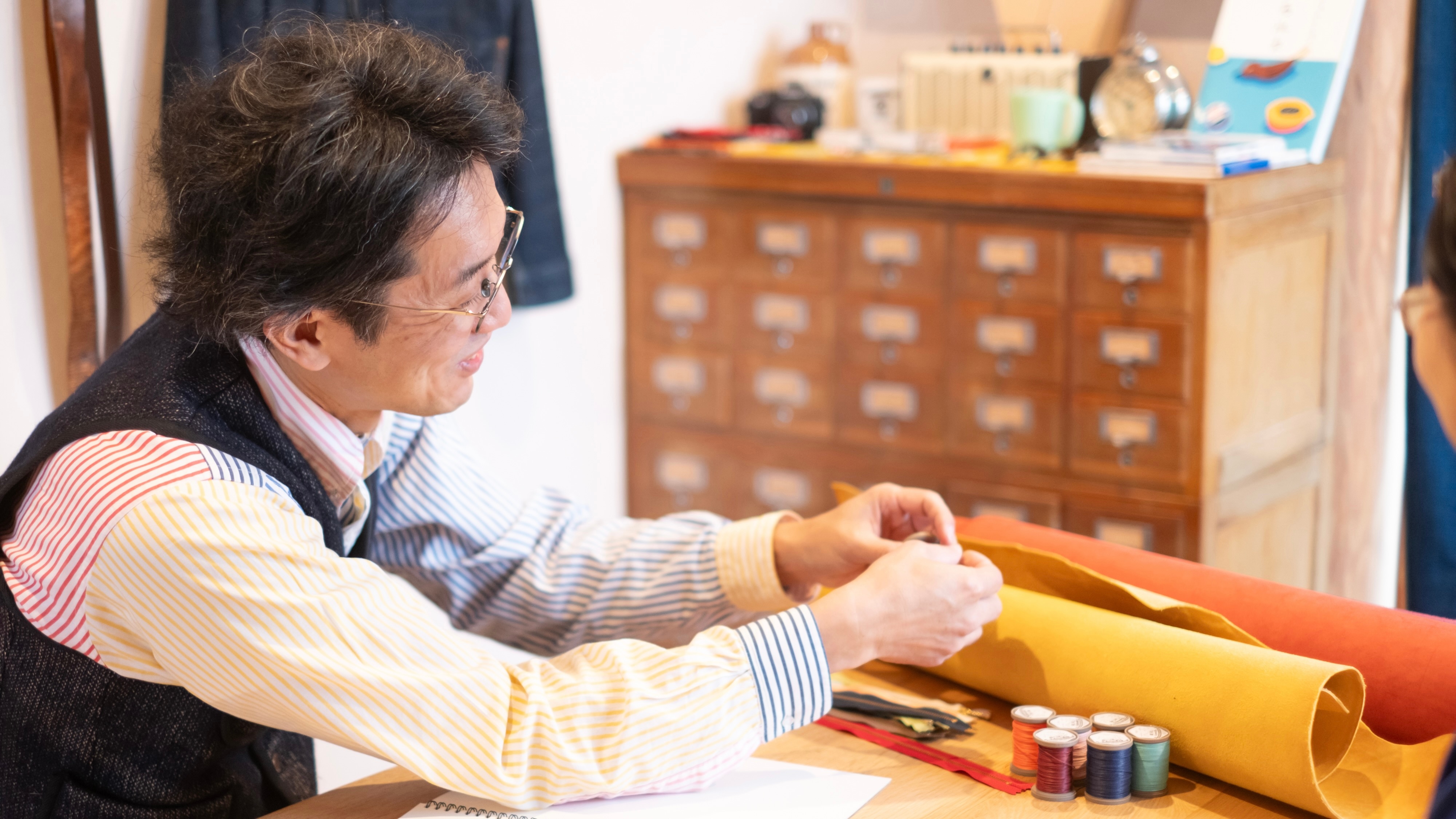 ゆっくりお話をしながらデザインイメージ、革、糸、金具等を決めて頂き、