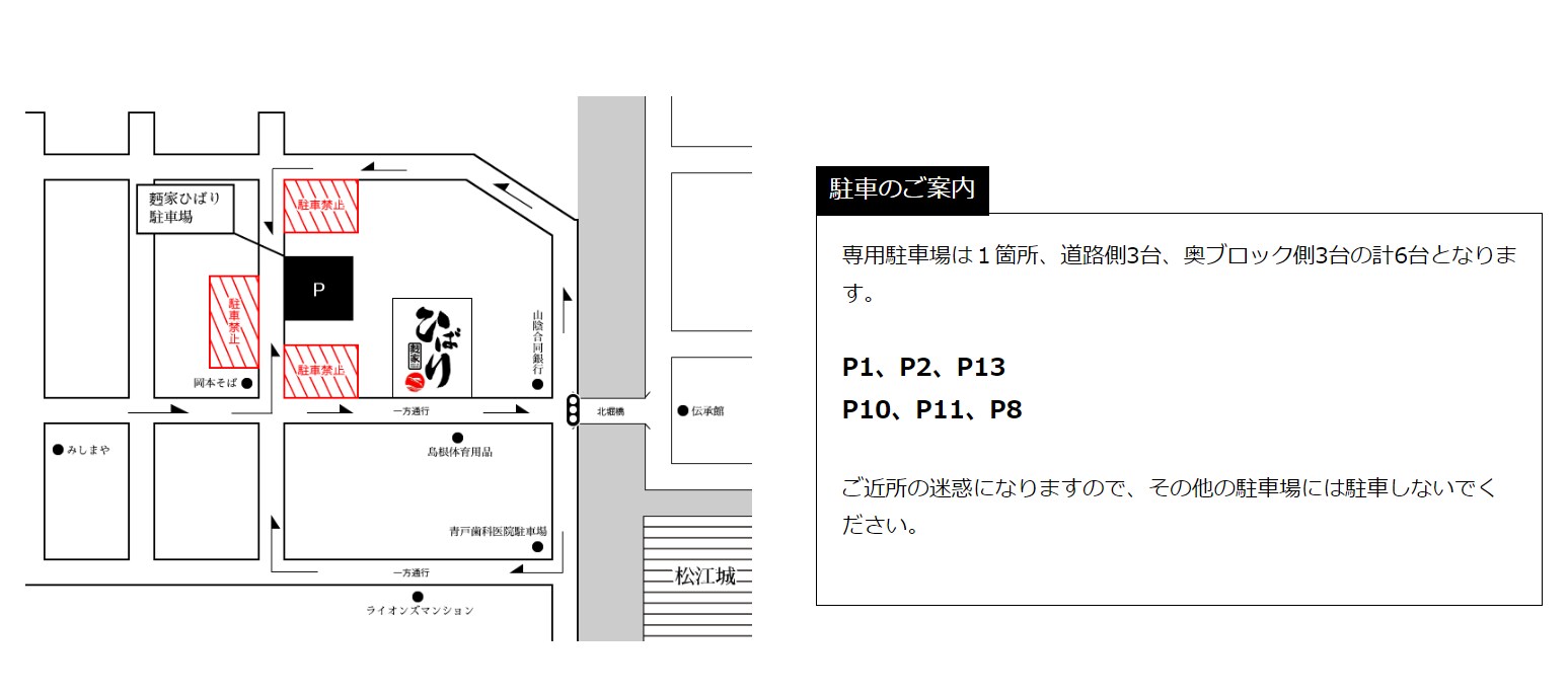 店舗北堀橋側3件隣2.3.5.6.7.8.番ひばり専用駐車場になります。