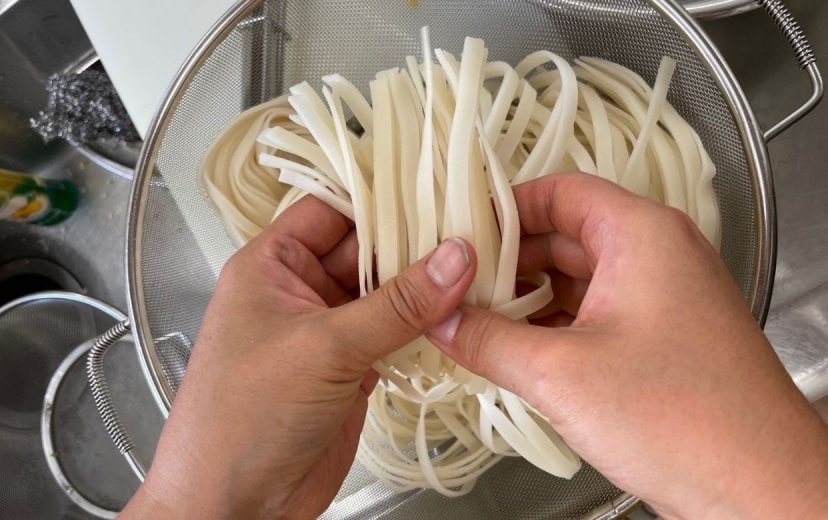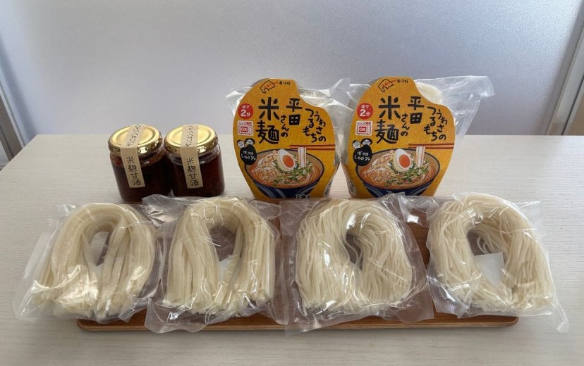 農園のお米を使用した加工品、米麹甘酒ヤンニョンジャン(8月中旬〜翌年の3月まで製造)、米麺(細麺と太麺があり通年販売)、ゆめぴりかのお米を使用した米粉(通年)を販売しています。