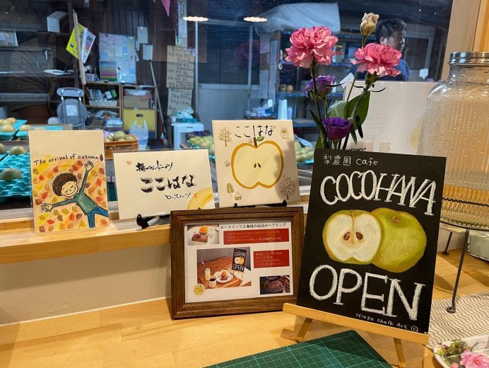 太陽の恵みを浴びて育ったフレッシュな神川梨をメインに季節限定で通販・直販で販売致します。年々、減少していく梨農家さんを支えたいという思いから、神川梨を使用した加工品であるカレー、ロースイーツや梨のスムージーを提供する神川町の小さなカフェです。農業体験、農家さんになりたい人、畑を貸したい人たちを応援しています。農業体験もあります。梨の種類の中でも幸水、豊水は有名ですが、そのあとに生産される晩生梨はあまり知られていません。梨農園カフェここはなでは主に、その晩生梨を使用したスイーツやカフェメニューを提供いたします。ロースイーツに関しては、ナッツを使用しますのでナッツアレルギーの方はご遠慮いただいております。焼かずに冷やして固める冷たい酵素が摂れるケーキです。