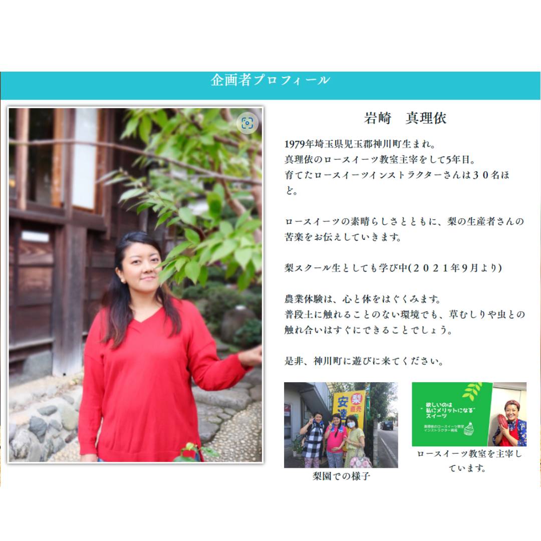 梨の廃棄ゼロを目指して梨の加工品をメインに作っています。その中でも、健康に食べてキレイになれるスイーツを届けたい!神川町の特産品である「梨」を使ったロースイーツを提供します。