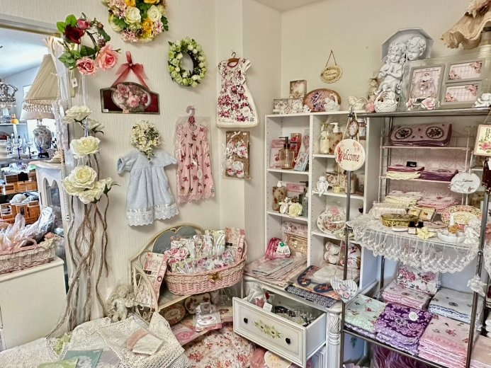 愛知県名古屋市守山区で、エレガントな天使と薔薇のロマンティック雑貨、イマンを中心としたフレンチカントリー雑貨、トールペイント、レース編み、一点物のお洋服など、作家さんの作品を取り扱っています。輸入雑貨、北欧ヴィンテージ、アンティーク、和骨董、アロマグッズなども豊富にご紹介しています。