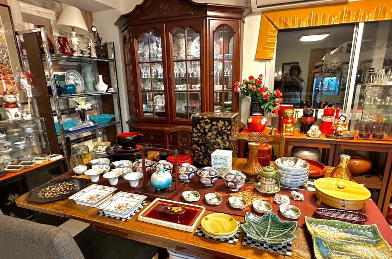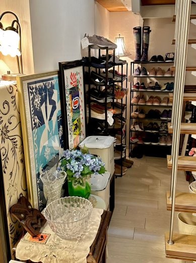 1階では各種講習会やお話会、和室では中古着物の販売。