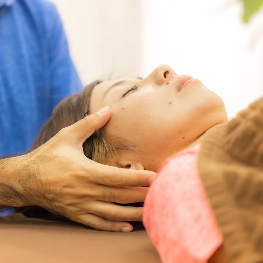 軽い力でやさしく体を揺らしながら、骨や関節を小さく動かし歪んだ骨格を整え、筋肉の緊張を緩めることで痛みを緩和させる施術です。