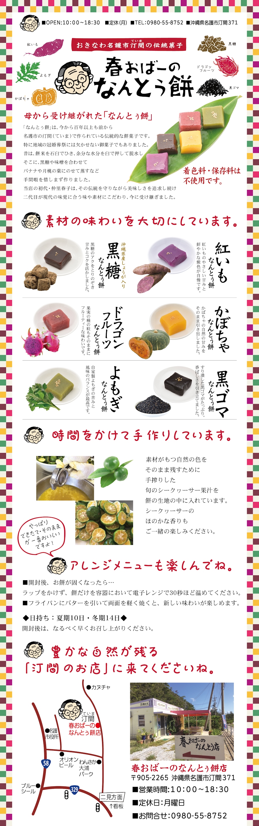 沖縄の昔ながらのお盆、お正月、清明際などの行事にも地域のお菓子として親しまれています。