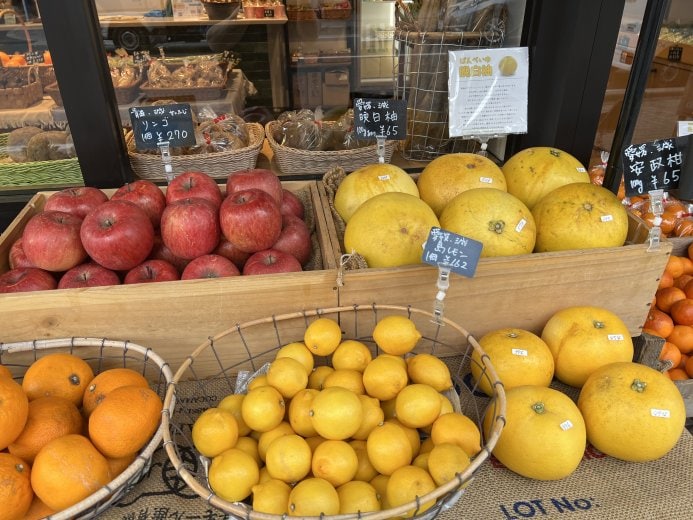 店内には約50種類以上の季節の野菜や果物が並び、訪れるたびに違う色と味わいに出会えるのが魅力です。