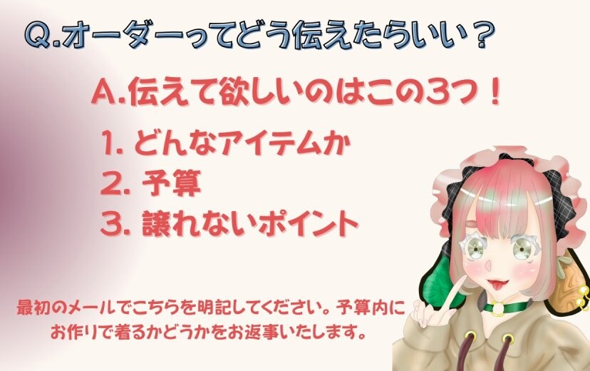 1点物にこだわり、量産型ではなく、1人ずつに気持ちを向けて作るのが好きです。