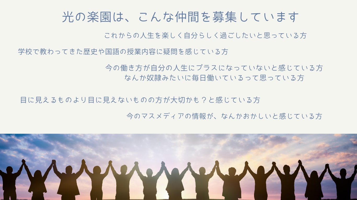 自由な人生を楽しむ人のプラットフォームが「光の楽園」です。