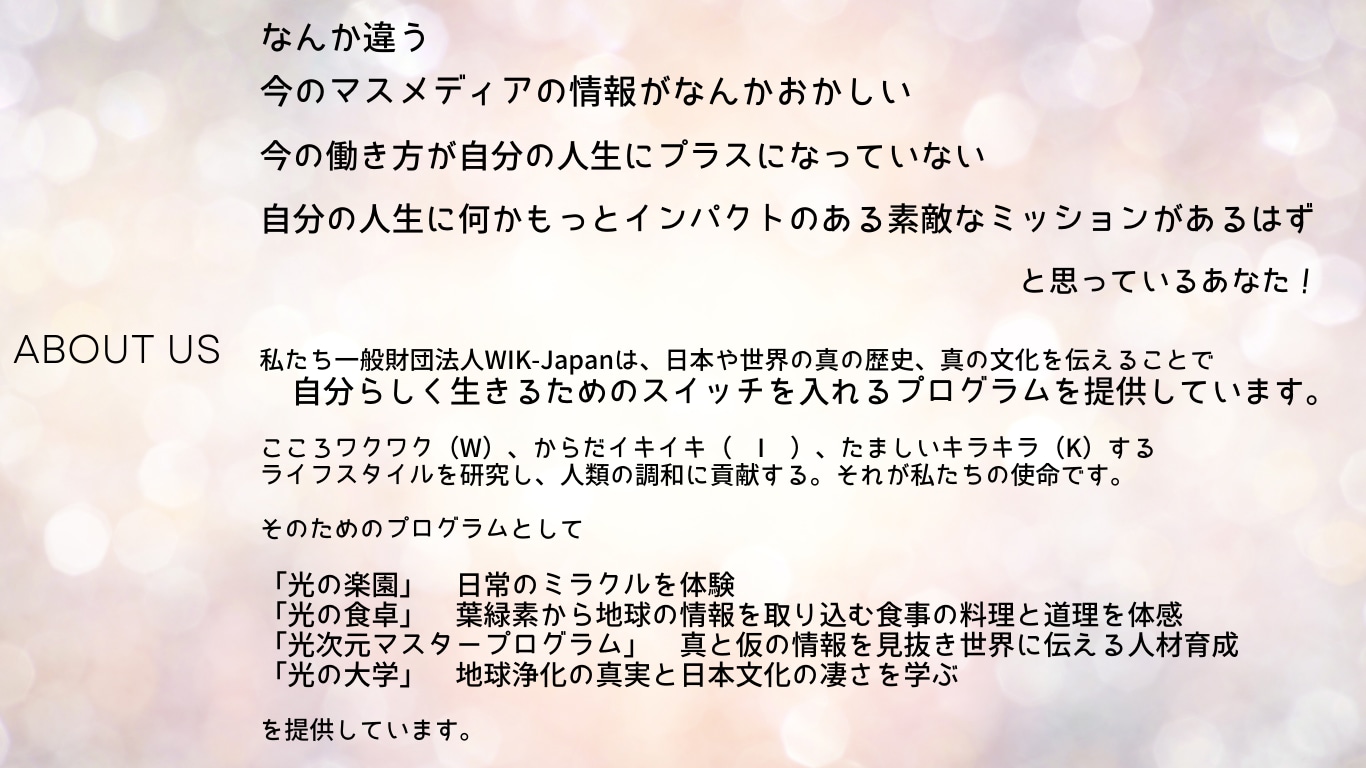 心ワクワク、体イキイキ、魂キラキラする「WIK」ウイックライフ。