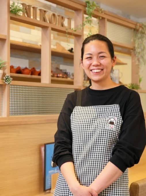 はじめまして。私は『おむすびカフェにこり』のオーナー森脇友里です。