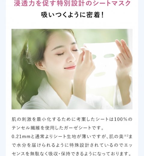 洗顔後、本製品を袋から取り出し、フェイスラインに沿ってお顔に載せてください。5〜10分程度時間をおいて顔からはがし、残ったエッセンスを顔全体に優しく馴染ませてください。
