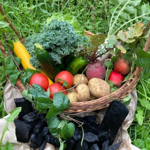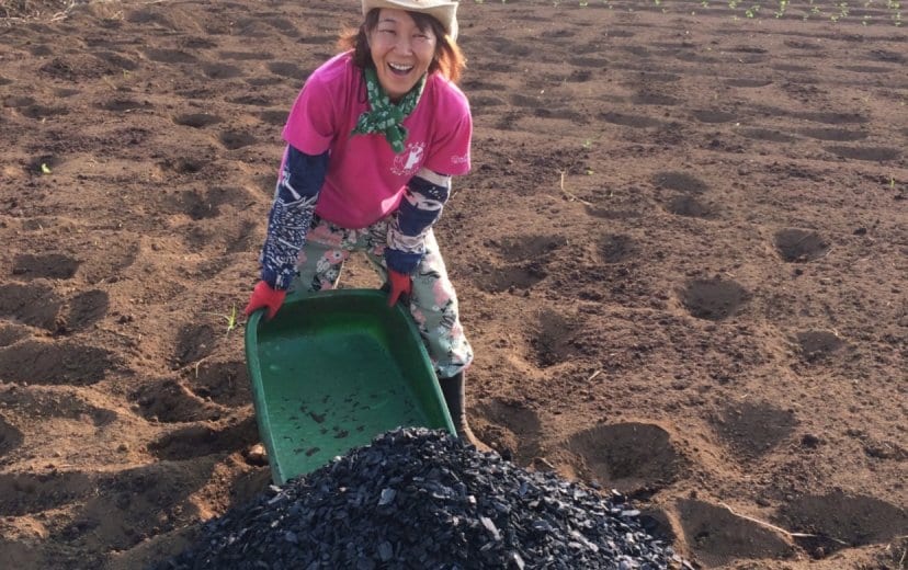 炭には、小さなミクロの穴が沢山開いていて、畑に入れると肥料や水が蓄えられてやがて微生物も棲みつきとても良い土ができて美味しい野菜がが育つ畑になります。