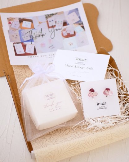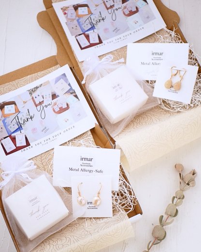 irmarではアクセサリーの着けごごちにもこだわっております。落としにくいフレンチフックピアスや痛くなりにくいイヤリング、汗をかいても痒くなりにくいネックレスチェーンをご用意しております。