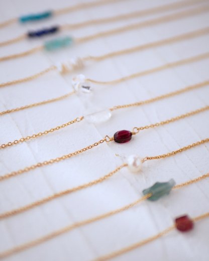 シンプルですが一つプラスするだけでパッと華やかになる大人の天然石アクセサリーをお届けいたします。石はその形成に何百万年という長い時間を要し地球の歴史と自然の力を詰め込んだ美しい時間の結晶です。そして石一つ一つはとても個性豊かです。色も形も柄も同じものは一つとして存在しない唯一無二なところに魅力を感じています。