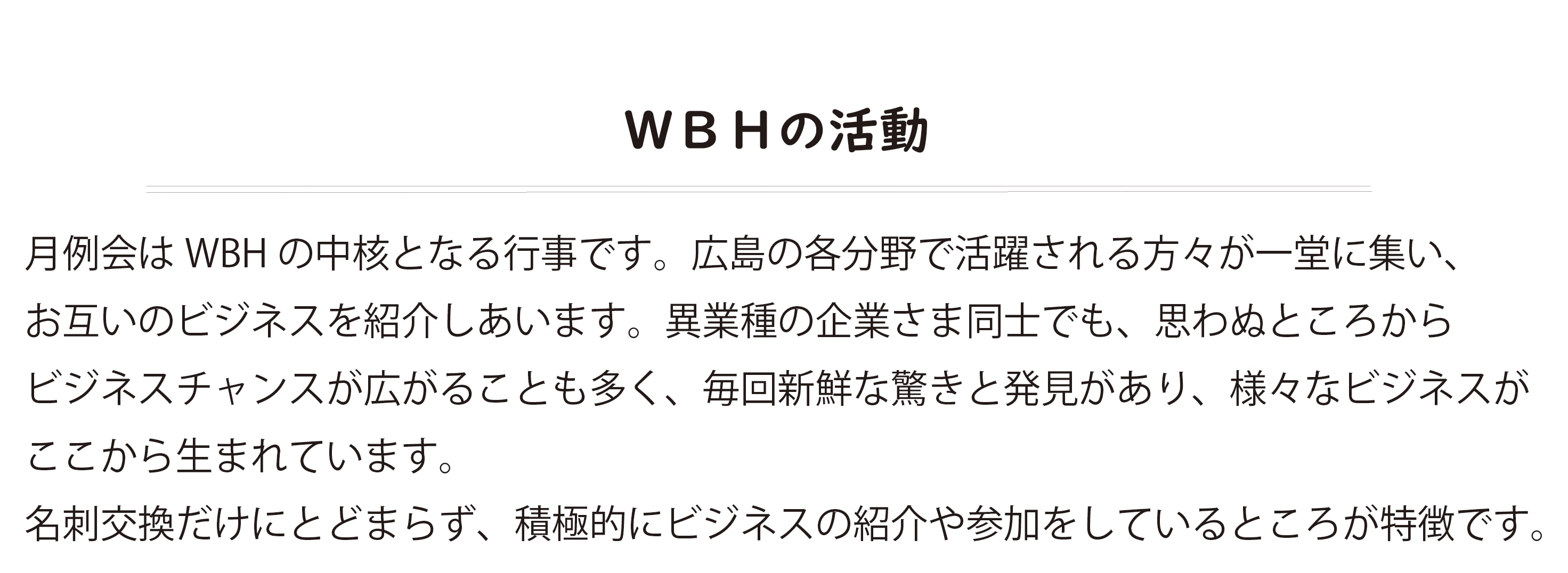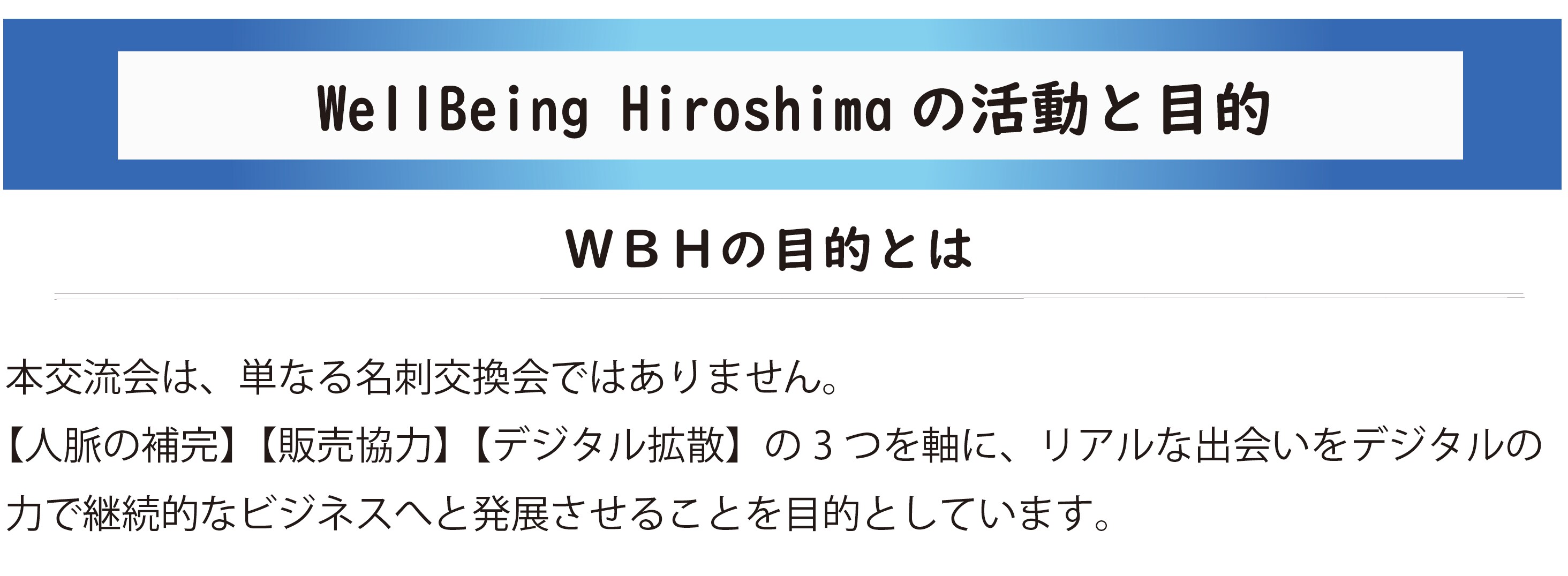 この会は、異業種交流会「Well being Hiroshima」(以下、「本会」又は「WbH」という。)と称する。