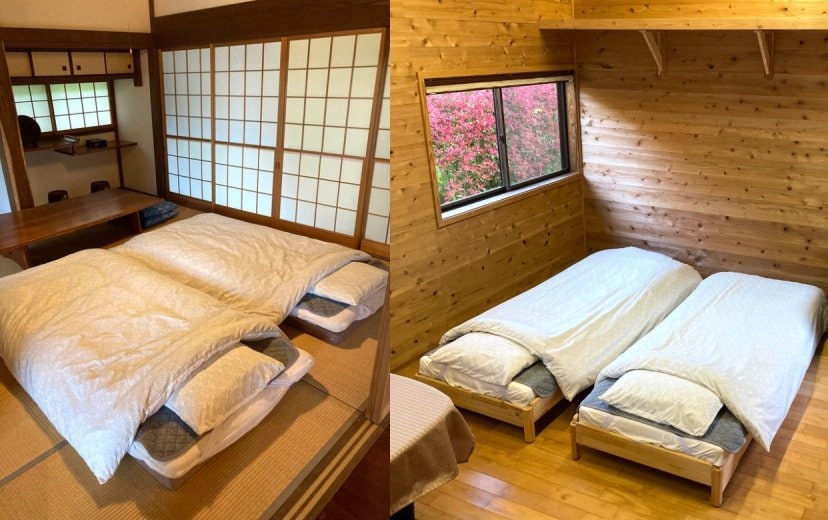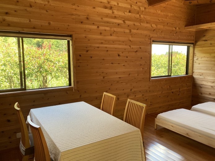 ナナクニヤマMINKAは里山に囲まれていることからとても静かな宿で、窓を開けてコーヒーを飲んでいると、鳥の鳴き声やいすみ鉄道の走る音が耳に入ってきます。また流れる雲を眺めたり、爽やかな風を感じたり、田んぼの稲の匂いや木々の香りを楽しむことができます。部屋にある工芸品の数々を楽しみながらお過ごしください。