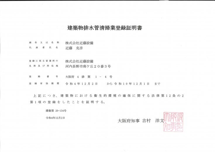 大阪府河内長野市の『株式会社近藤設備』です。