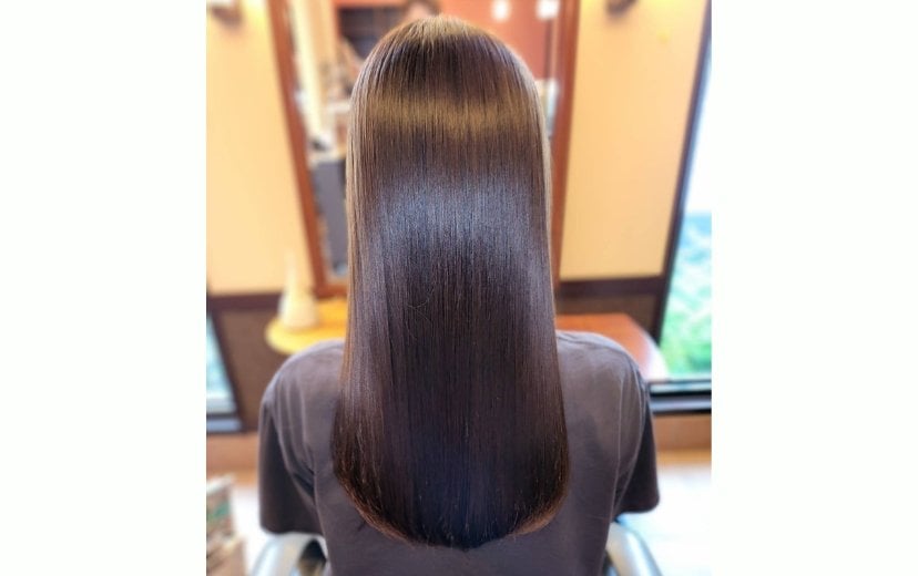 全体(根元から毛先まで)手洗いシャンプー+ブロー付き縮毛矯正ストレート・・・従来のようなツンツン、ぺったんこにならないデザインストレート、毛先を内巻き、外はね、自然にするなどデザインの幅が広がる髪質改善ストレートです ¥14.000