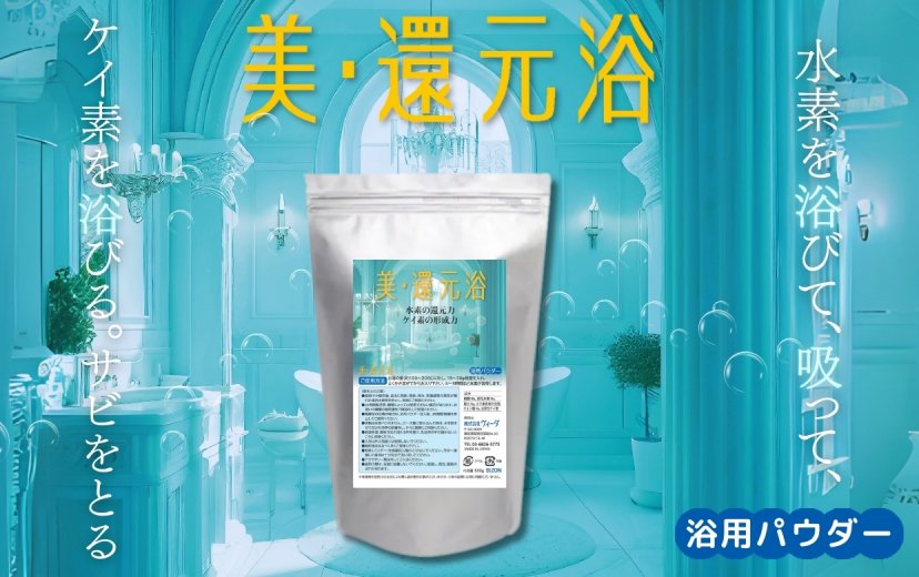 美・還元浴で、心身ともにリフレッシュしませんか?特別な成分が豊富に含まれたこのパウダーは、水素とケイ素のパワーで日々の疲れを癒し、美肌効果も期待できます。自宅のお風呂で贅沢なスパ体験をお楽しみ下さい!
