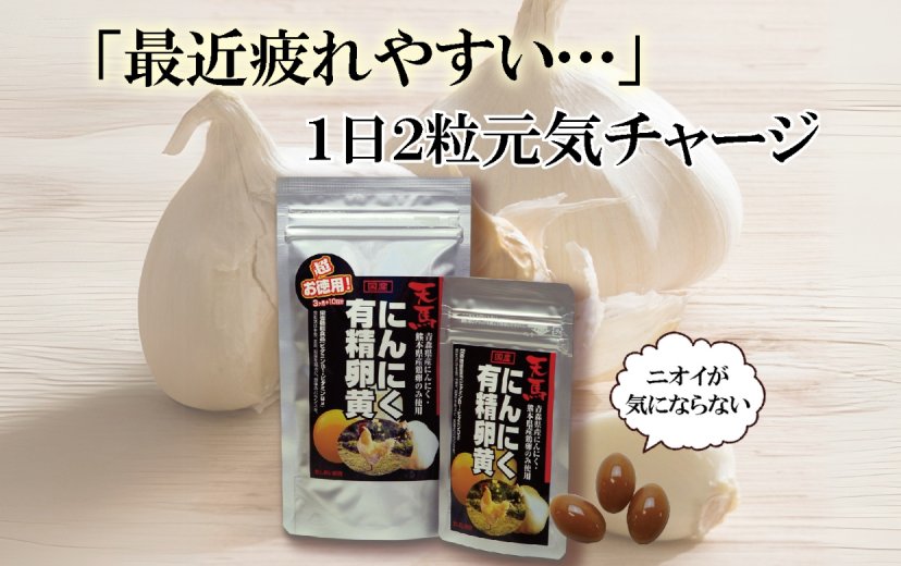 スタミナ不足、寝起きがスッキリしない、歩調が上がらない、虚弱体質、気力が続かない、疲れやすい、そんなあなたに、にんにく卵黄サプリ。アリシン/スコルジニン/ビタミンB1/ビタミンC/リン/鉄/タンパク質