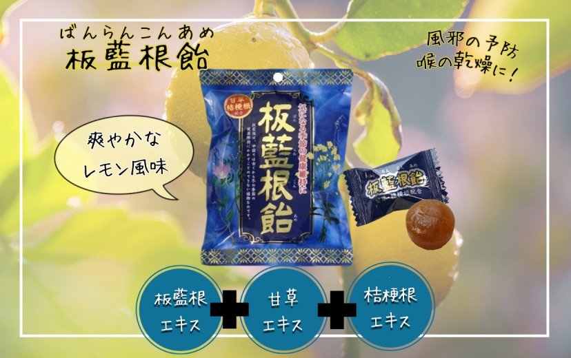 風邪の予防、喉の乾燥、イガイガ流行するウイルスの予防に板藍根飴。板藍根エキス+甘草エキス+桔梗根エキス。のど飴/喉の違和感/声がれ/風邪対策/乾燥対策/健康維持/ハーブエキス