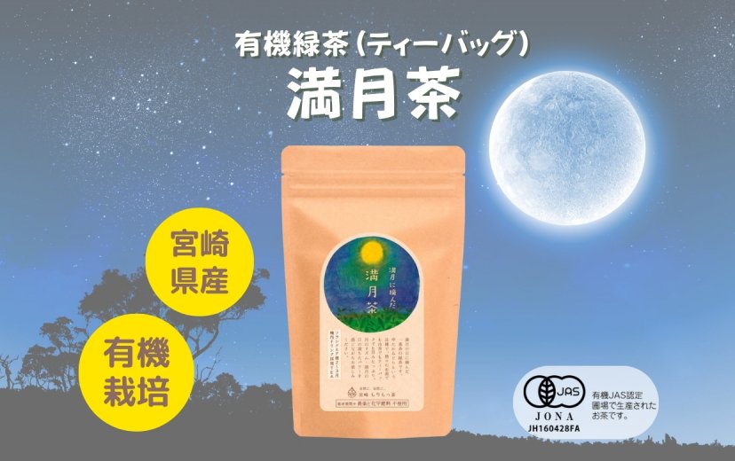 満月の日に摘んだ柔らかい新芽の緑茶。農薬、化学肥料不使用/有機栽培/有機JAS認定/お茶/ティーバッグ/もりまっ茶