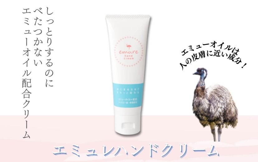 エミューオイル配合ハンドクリーム シアバター さらさらの手触り 角質まで浸透 高保湿 しっとり ふっくら べたつかないので家事や仕事の合間にも!