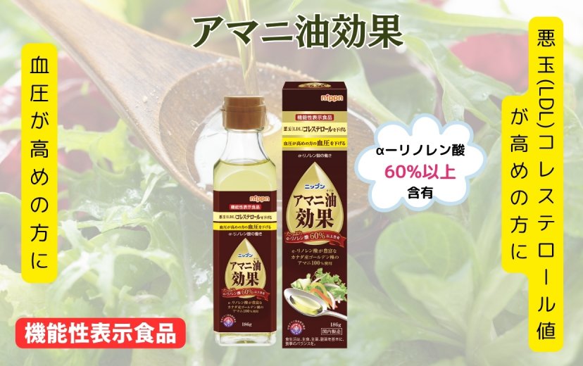 アマニ油 アマニ油効果 悪玉コレステロール値が高めの方に 血圧が高めの方に α-リノレン酸 LDL オメガ3 機能性表示食品 健康油 美容 健康