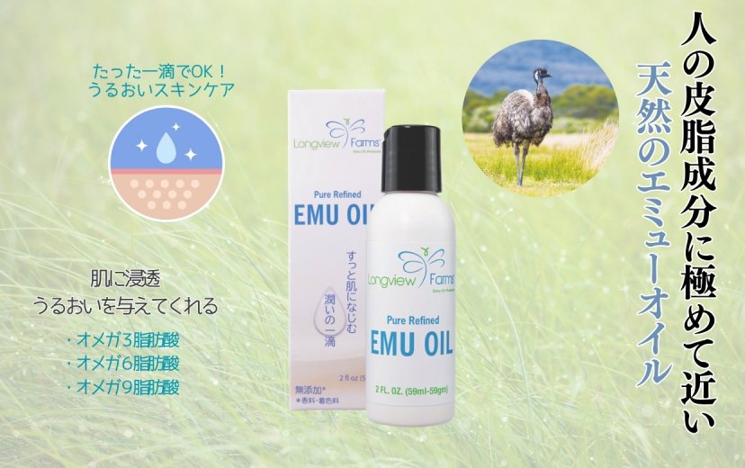 ピュアエミューオイル 人の皮脂成分に極めて近い天然エミューオイルで顔も体も簡単ケア べたつかずすっと肌になじんでしっとり潤う 保湿ケア ひじひざかかと マッサージオイル 美容オイル