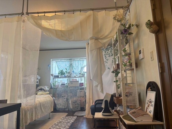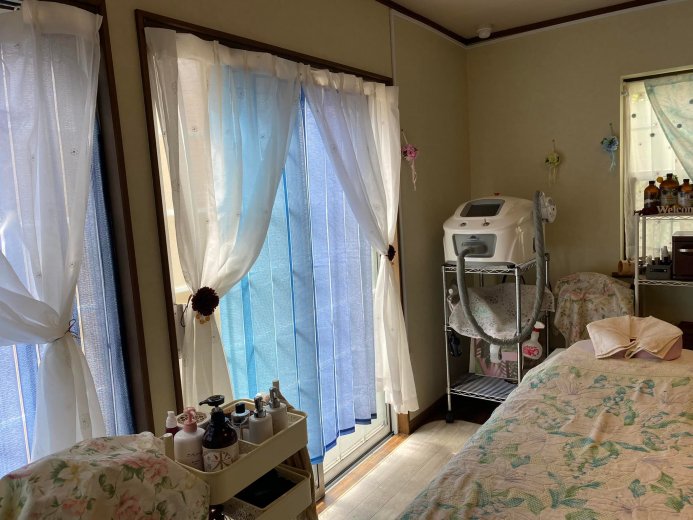 住居としては使用してませんので生活感がなく、他のお客様と被らないようゆっくり施術時間を確保しております。施術室はカーテンで仕切られて安心感があります。お着替え室にドレッサーもご用意しております。施術後はその日ごとに違うフレーバーティーをお出ししてます。お子様をお連れの方も、楽しく施術が終わるのを待ってもらえるよう、2階にテレビを設置しております。Hulu、プライム等お子様アカウントで見れます。お気軽にお越しください。