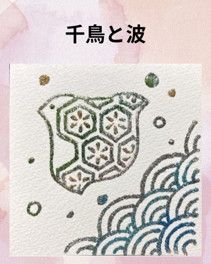 直筆・日本古来の文様をラメを使い描きあげます。