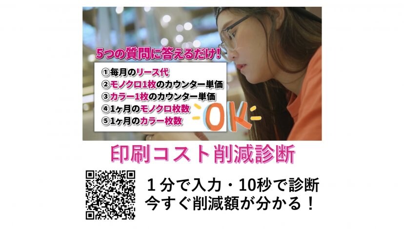 契約形態が複雑なコピー機、複合機に関しての相談、現在のコストがどれくらい削減できるかの診断は無料です。コストの見直しを考えている方は、ぜひ一度ご相談ください。