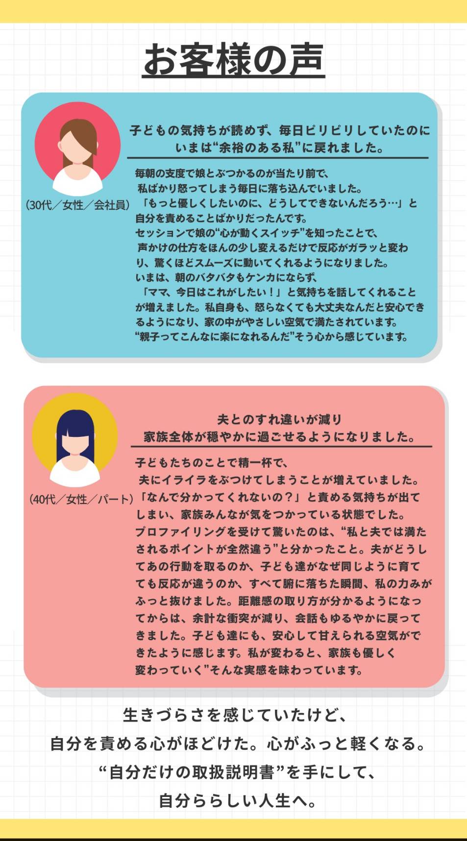 メルマガではプロファイリングについての発信や頑張るママにおすすめの商品のご紹介だけでなく、ほっこりできるエピソードをのせて、お客様と交流で出来るような内容を届けられたらとおもっております。ぜひご登録お願いします。