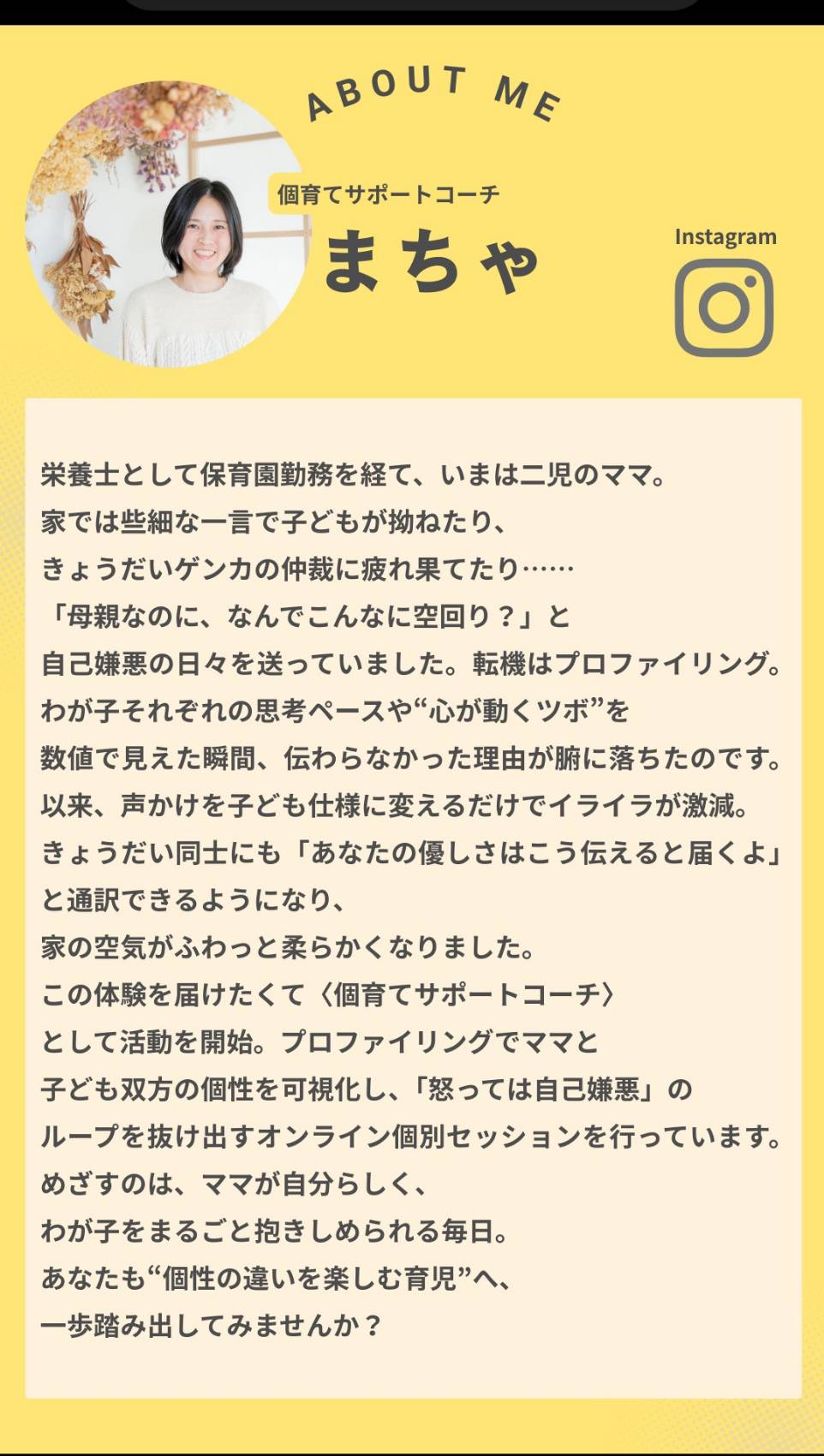 最後に私「個育てサポートコーチ|まちゃ」についてはこちら