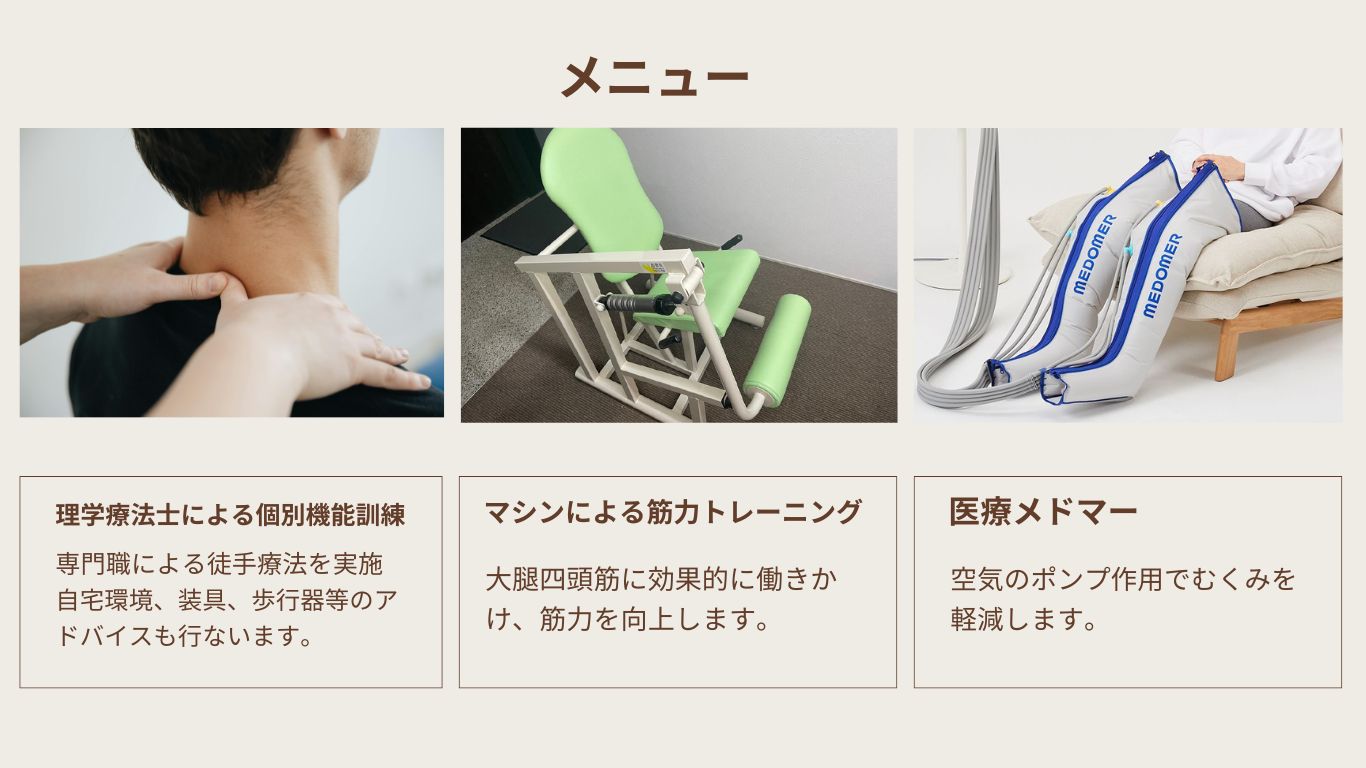 国家資格の理学療法士が一人ひとりに合わせた個別リハビリを提供しています。