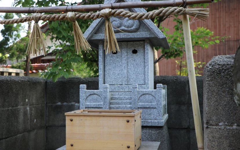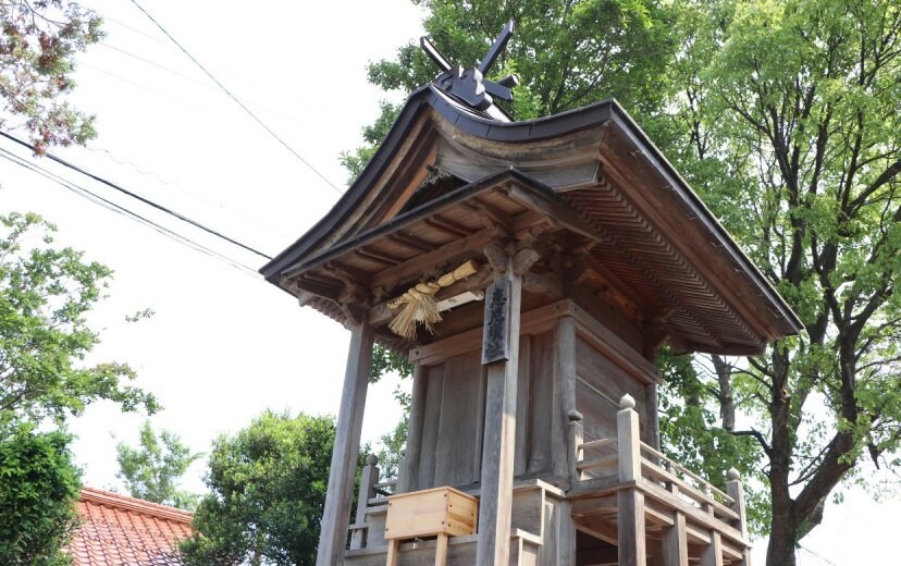 境内地の北西には、当地区の神葬祭のご家庭の「神道祖霊舎」があり、ご自宅の御霊舎と同じように、祖霊舎にも先祖代々の御霊が祀られ、敬神崇祖の祈りが捧げられています。