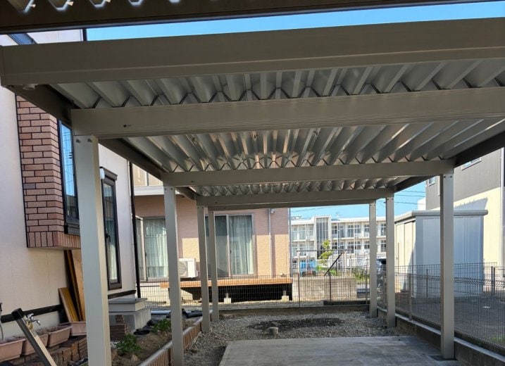 エクステリア解体、外構工事、カーポート工事、テラス・テラス囲い工事、ポリカ屋根張り替え、バルコニー工事、サンルーム工事、手摺工事、フェンス工事、門扉工事、宅配ボックス付きポスト、ウッドデッキ工事、デッキ張り替え、アップゲート・伸縮ゲート工事、オーニング工事、物置工事