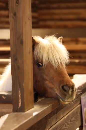 常に目の前にポニーが放馬されていて触れ合うことができ、鶏やマガモもいる賑やかな場所です