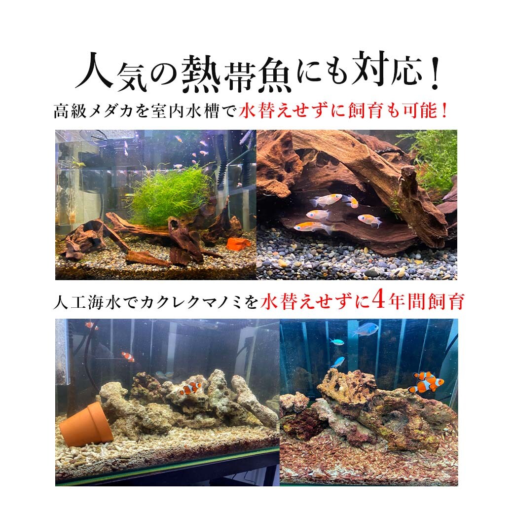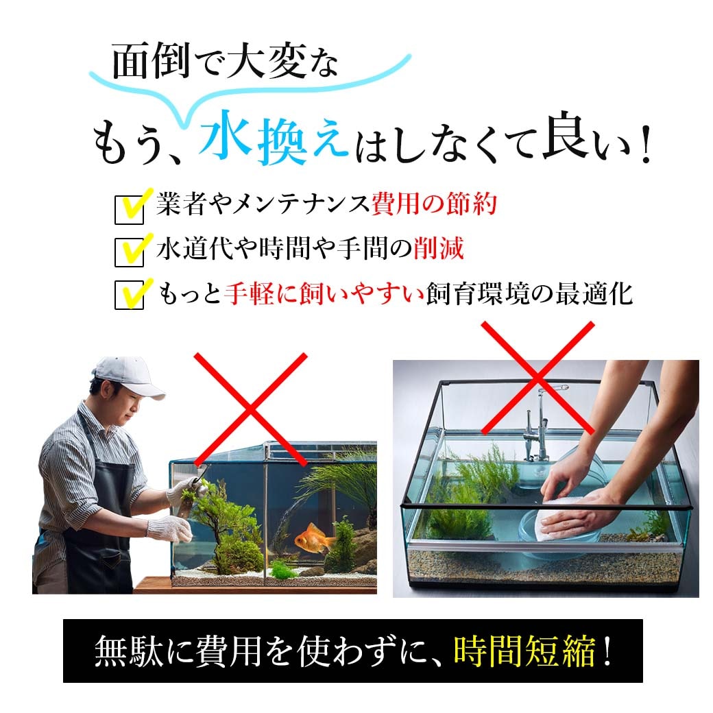 水換えなしで水質を維持し、魚のストレスも軽減し、長期間安定した美しい水槽環境を保つことができます。