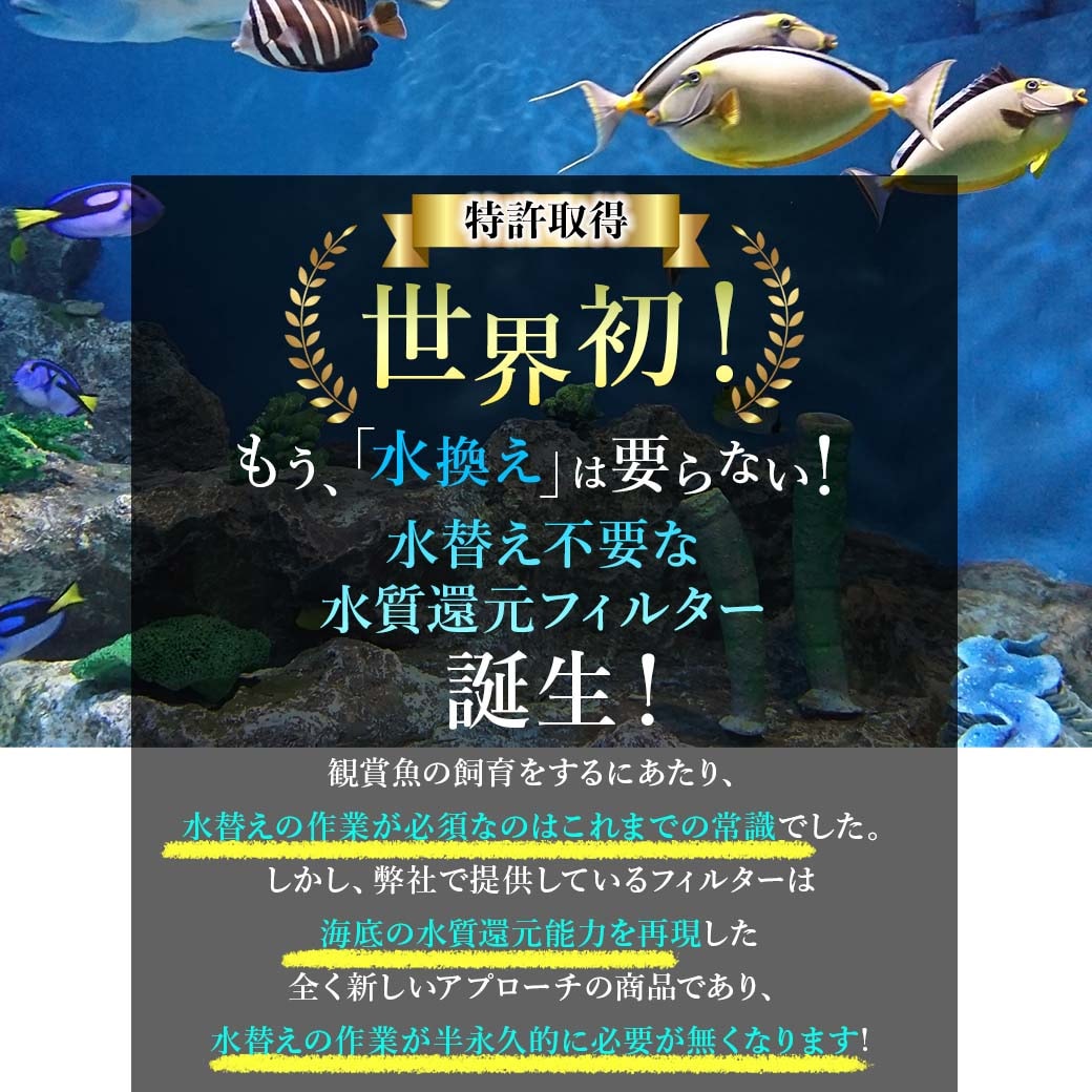世界初の特許取得!水換え不要で手間いらずな還元フィルター。