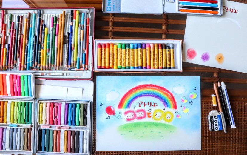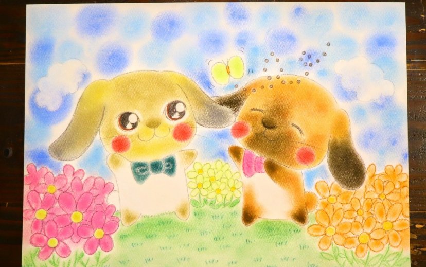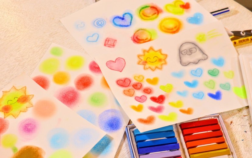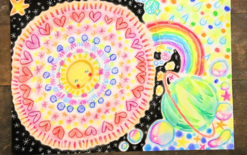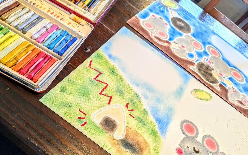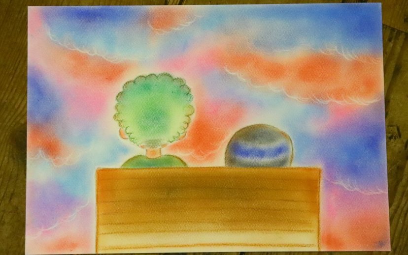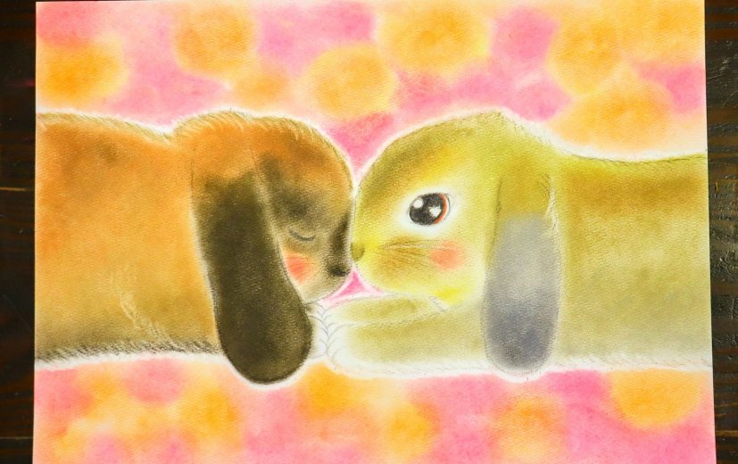 私の絵は手描きでパステルという画材を使って指で色を塗っています。