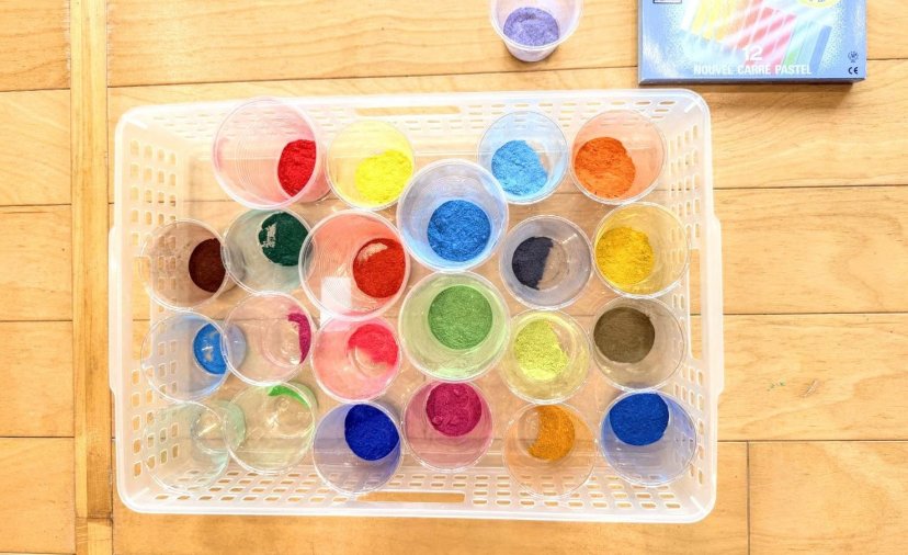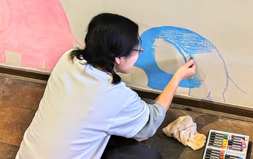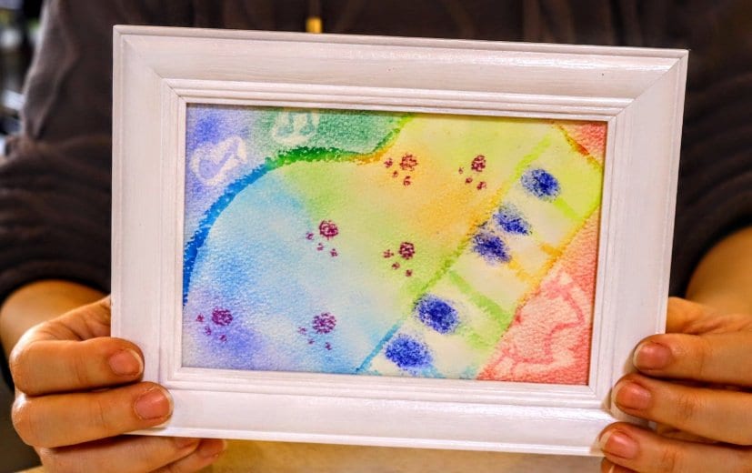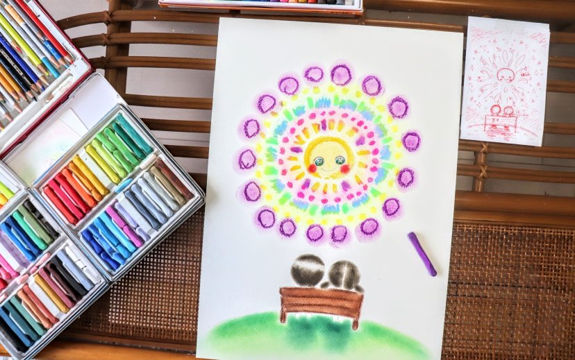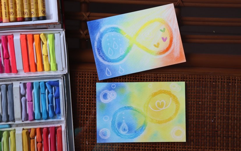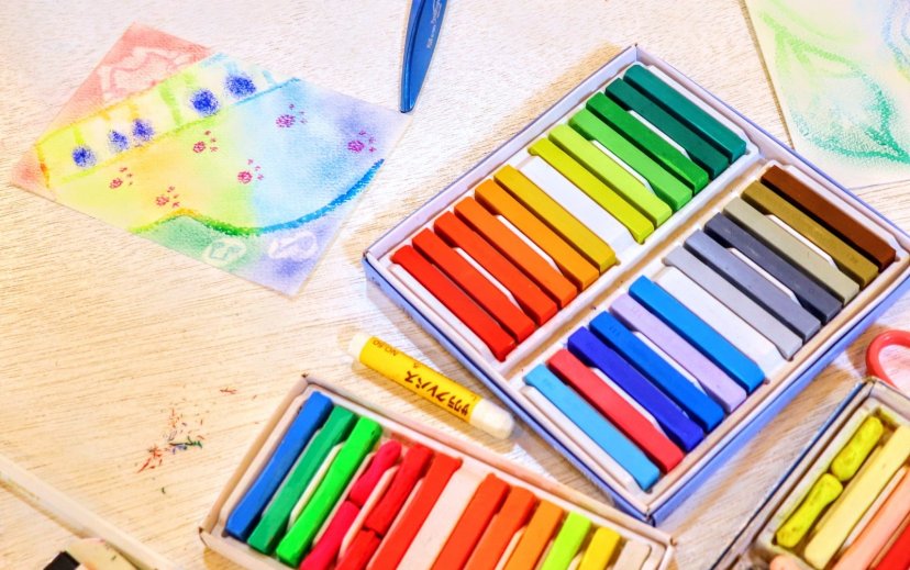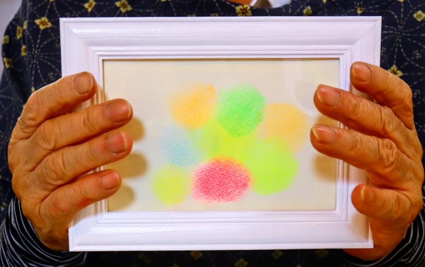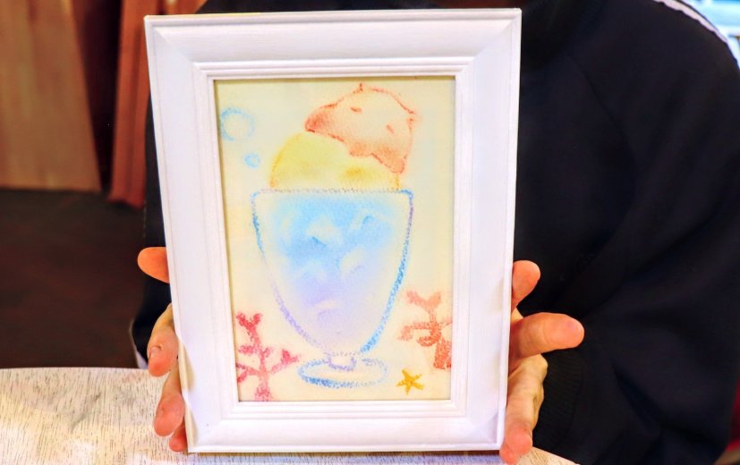 私の絵は手描きでパステルという画材を使って指で色を塗っています。