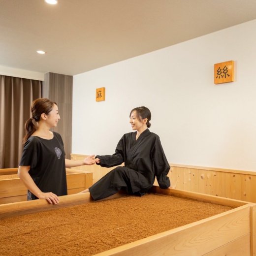 木曽ひのきの香りを思う存分楽しみながら、ふわふわのおが粉に包まれ、自分だけの癒しの時間を体感していただきます。