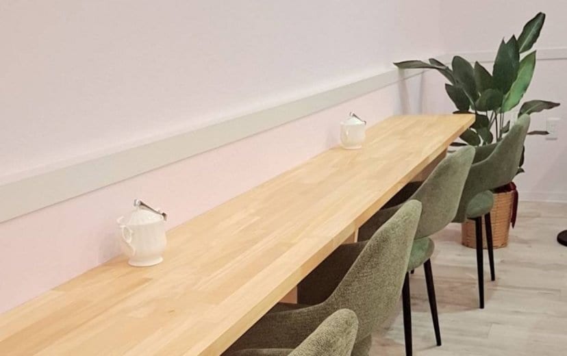 幸田町のアートカフェ「Café COULEUR(カフェ クルール)」の外装内装にも『色』にこだわり、ヨーロッパイメージの高貴で可愛らしく、明るく、そして落ち着ける空間にデザインしました。入り口ドアや食器は、古きよき、ヨーロッパのアンティークを取り入れました。重厚なイギリスの扉を開けると、そこには、ワクワクするような気持ちが明るくなるような、見たことのない空間が広がっています。