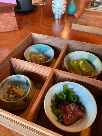 道楽とは、人間最高の悦びのステージであり、みんな求めたいが、中々たどり着けない「久遠」の事です。他人の目を考えず全財産を投入し、建設プロジェクトを作り、職人たちの自由な発想で完成させました。どうぞ日本式道楽割烹久遠の全てをご堪能ください。