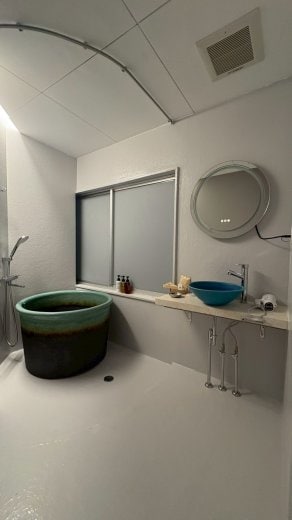 その代わりに、信楽焼の湯舟と、窓からの光と、少しの余白。