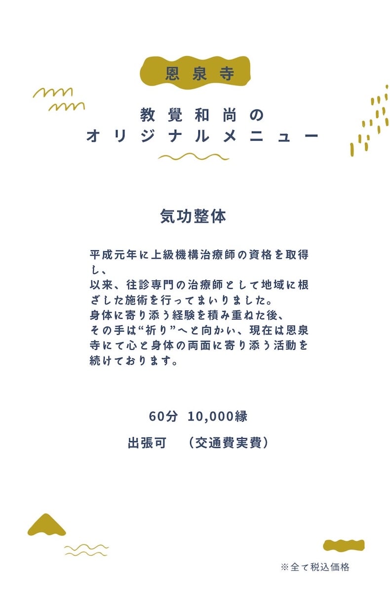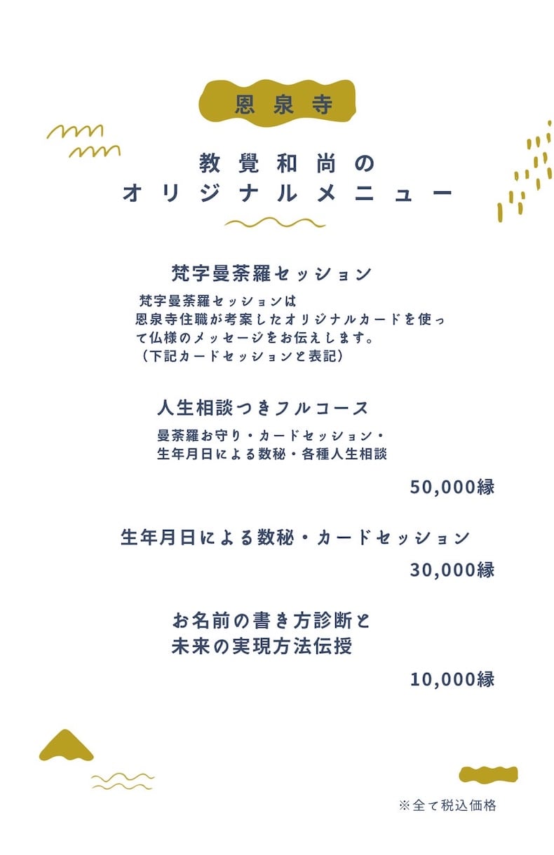 ◼︎教覺和尚によるオリジナルメニュー
